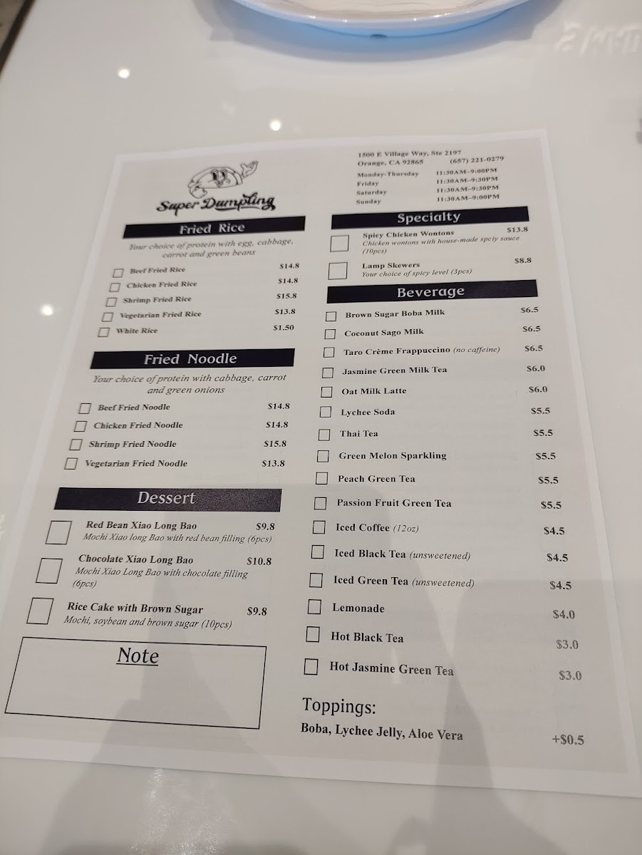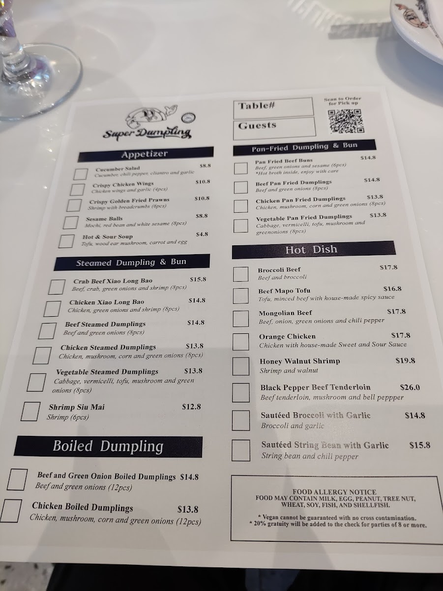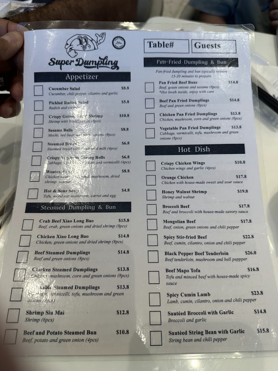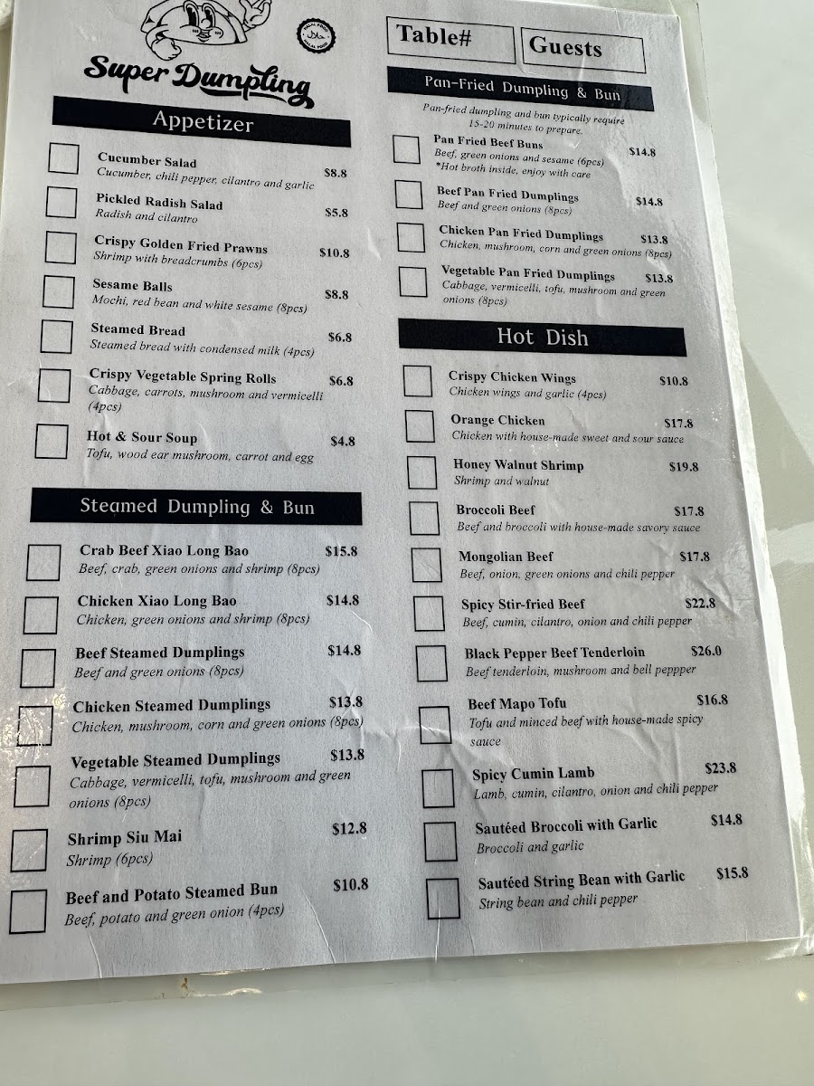 Super Dumpling Menu